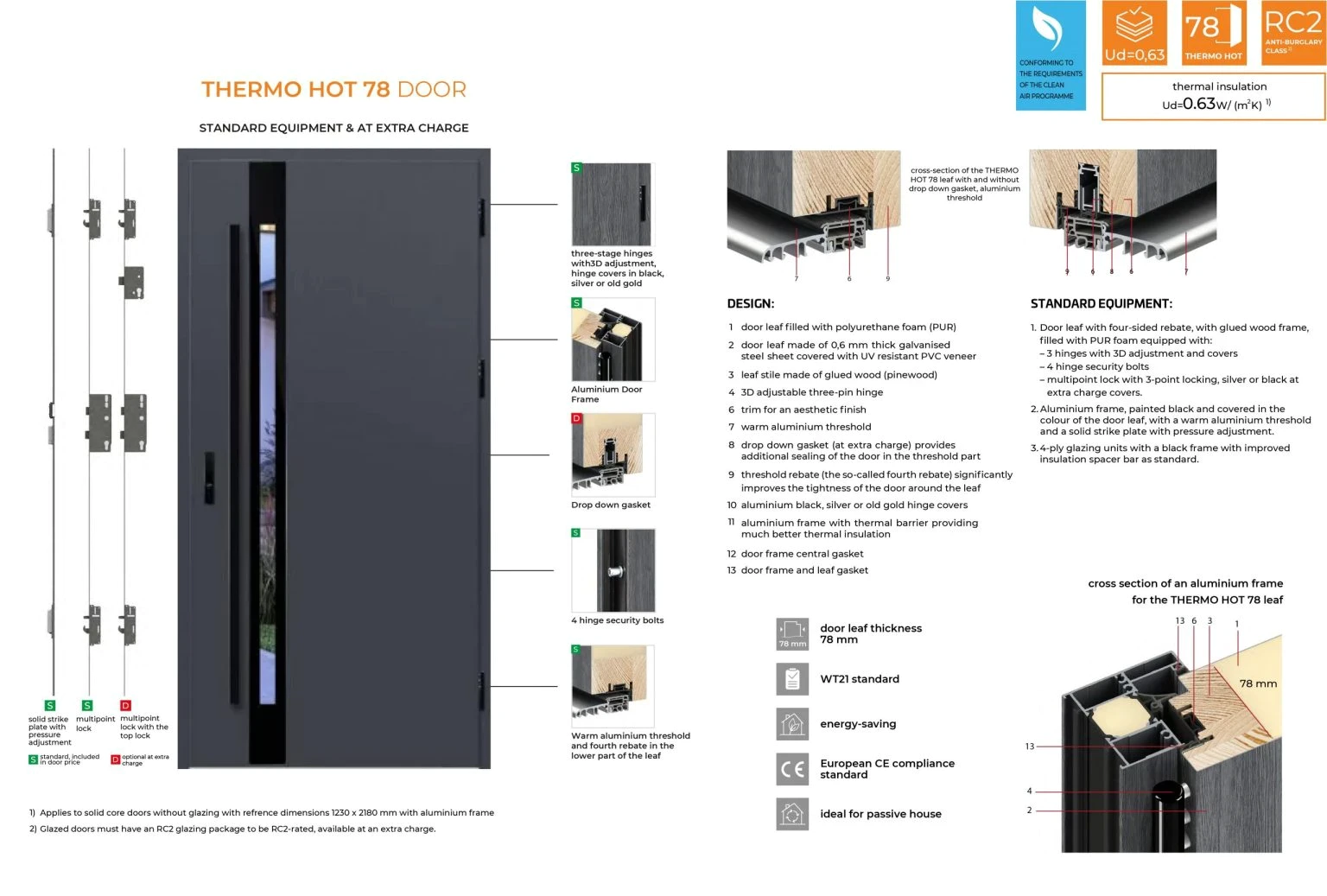 THERMO HOT 78 with thermal insulation Ud=0.63 W/(m2K) and leaf thickness of 78 mm