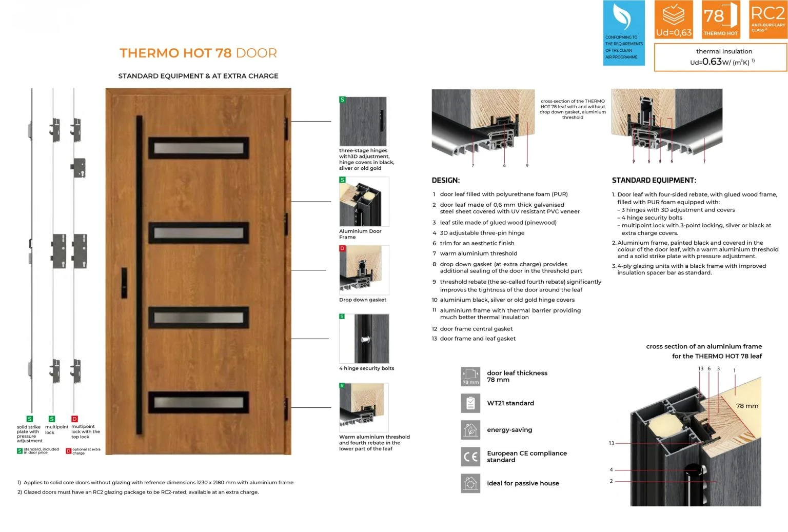 THERMO HOT 78 with thermal insulation Ud=0.63 W/(m2K) and leaf thickness of 78 mm
