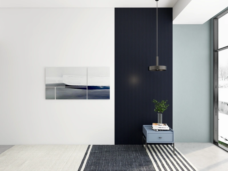 • Matte black wave panels with sleek, waterproof finish for contemporary walls.