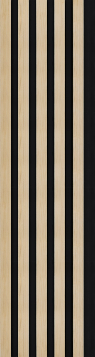 - Oak-toned slat panels with black accents, combining warmth and sophistication.