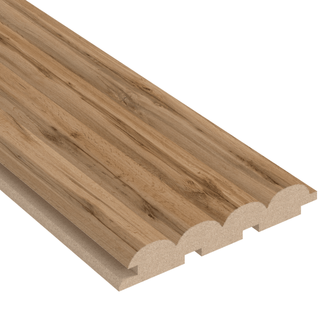 Elevate your interior with Wave MDF wall panels in a rich pecan finish. This is durable panels adds a sleek, wave-textured accent to any space.